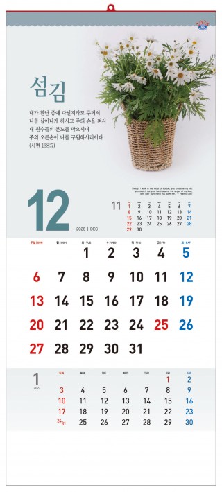 3) 타사 달력은 교회에 배송된 카다로그에서 선택. (일부 카다로그 불가)