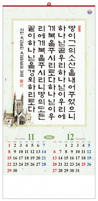 3) 타사 달력은 교회에 배송된 카다로그에서 선택. (일부 카다로그 불가)