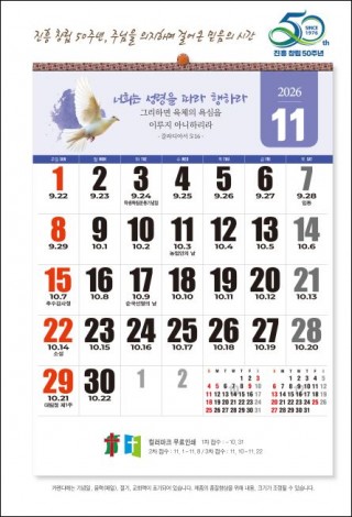 배송되는 모든 달력에는 교회 절기와 음력이 표시되어 있습니다.
