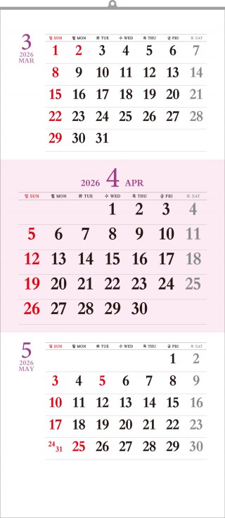 73호 삼단 장3절숫자판 (380*700*13매-스노우화이트지) > 일반달력(벽걸이-음력양력큰글자)